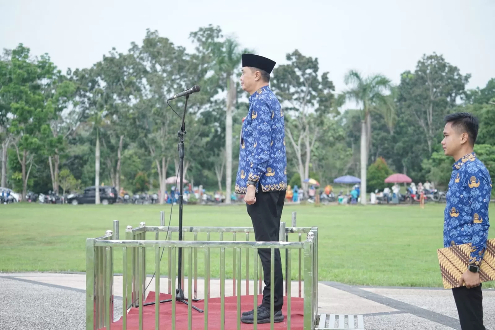 Pj Bupati Kabupaten Muaro Jambi Bachyuni Deliansyah dalam amanatnya membacakan pidato Kementerian Komunikasi dan Informatika (Kemenkominfo) Republik Indonesia.