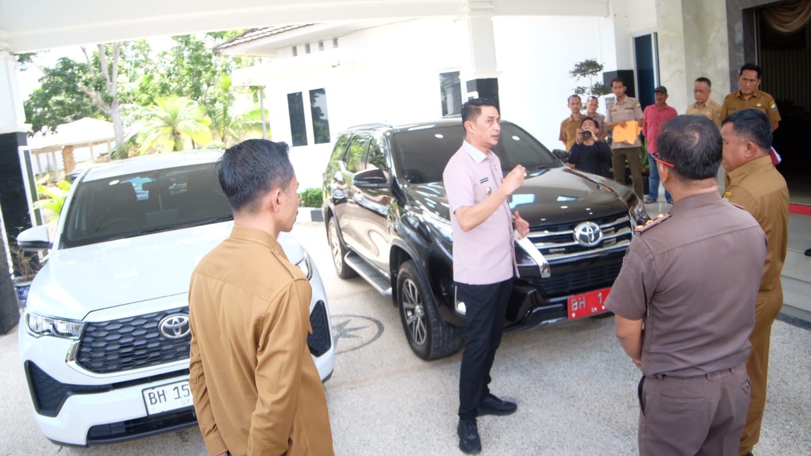 Penyerahan mobil dengan nomor polisi BH 1 G ini dilaksanakan teras Rumah Dinas Bupati Muaro Jambi, Rabu 21 Mei 2024. Penyerahan mobil dinas tersebut juga disaksikan oleh Sekda Muaro Jambi, kepala BPKAD, Kabag Umum Setda Muaro Jambi dan para pejabat di lingkungan sekretariat daerah.