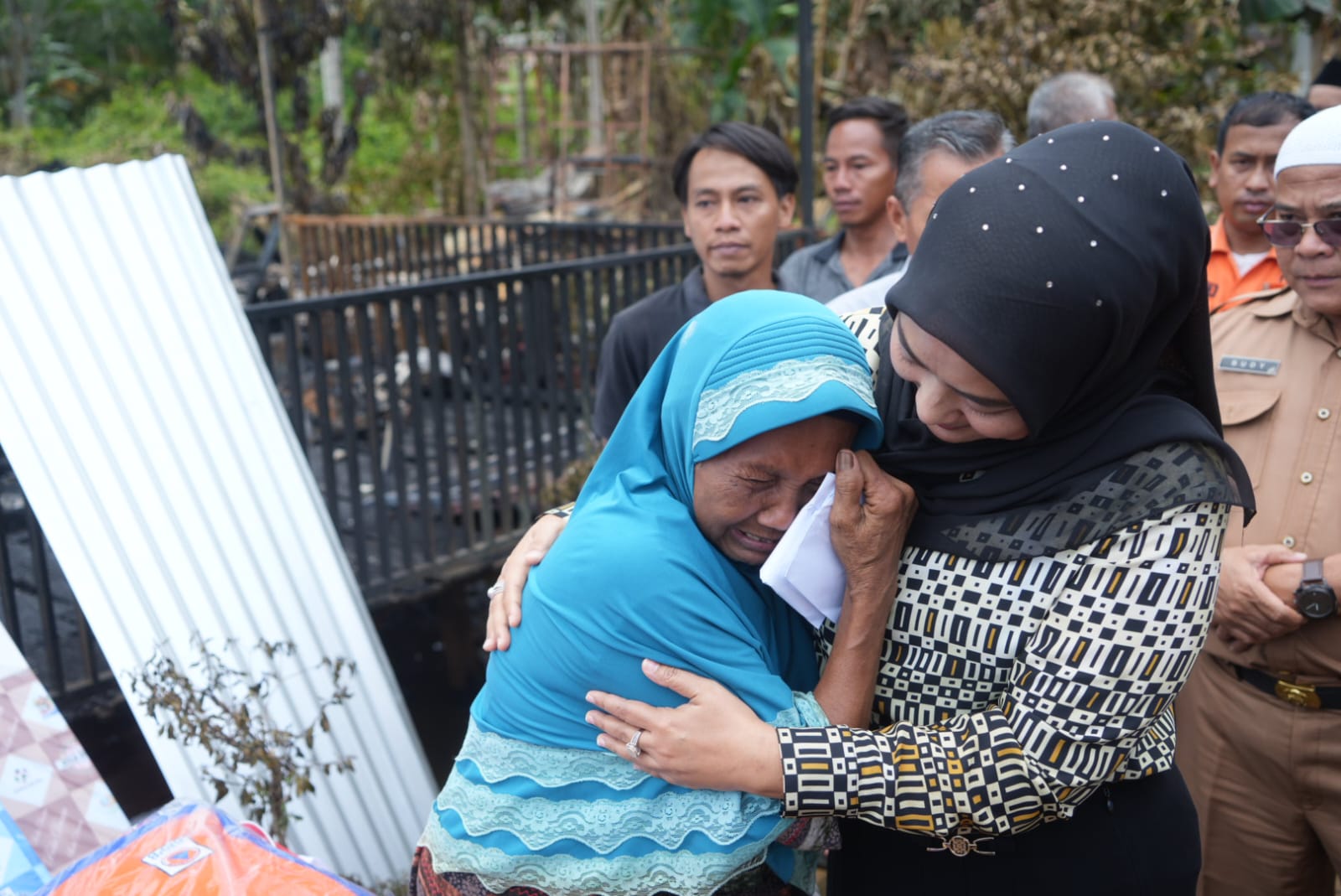 “Yang sabar ya bu, yang kuat, insya Allah di balik semua musibah ada hikmahnya,” kata Ririn sembari mengusap lembut bahu ibu Jamilah.