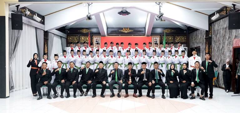 Suasana acara berlangsung penuh semangat dan kebanggaan, menandai langkah awal para calon Paskibraka dalam menjalankan tugas bersejarah mengibarkan Sang Saka Merah Putih.