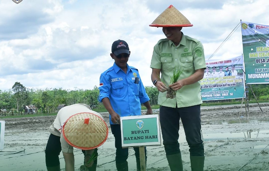 NARASIJAMBI.COM – Upaya percepatan tanam dan peningkatan produksi padi di Kabupaten Batanghari kembali digelorakan melalui kegiatan Tanam Perdana Padi Sawah di Desa Jelutih, Kecamatan Batin XXIV, yang digelar pada Rabu, 8 Oktober 2025.